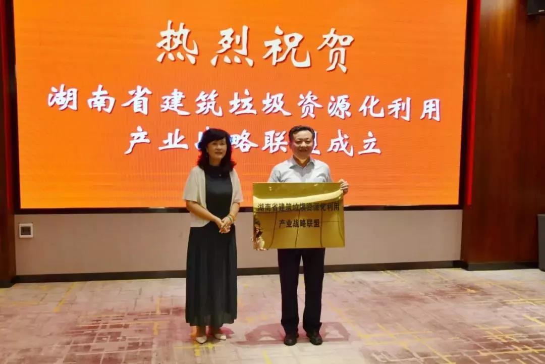 丁彦均宣告由省内46家从事建筑垃圾资源化利用企业、装备制造单位、科研机构以及高校院所等单位参与的湖南省建筑垃圾资源化利用产业战略联盟正式成立。